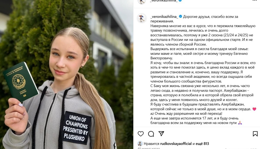Rusiyalı fiqurlu konkisürən Veronika Jilina Azərbaycan vətəndaşlığı alsa da, beynəlxalq arenada ölkəmizi təmsil edə bilməyəcək.